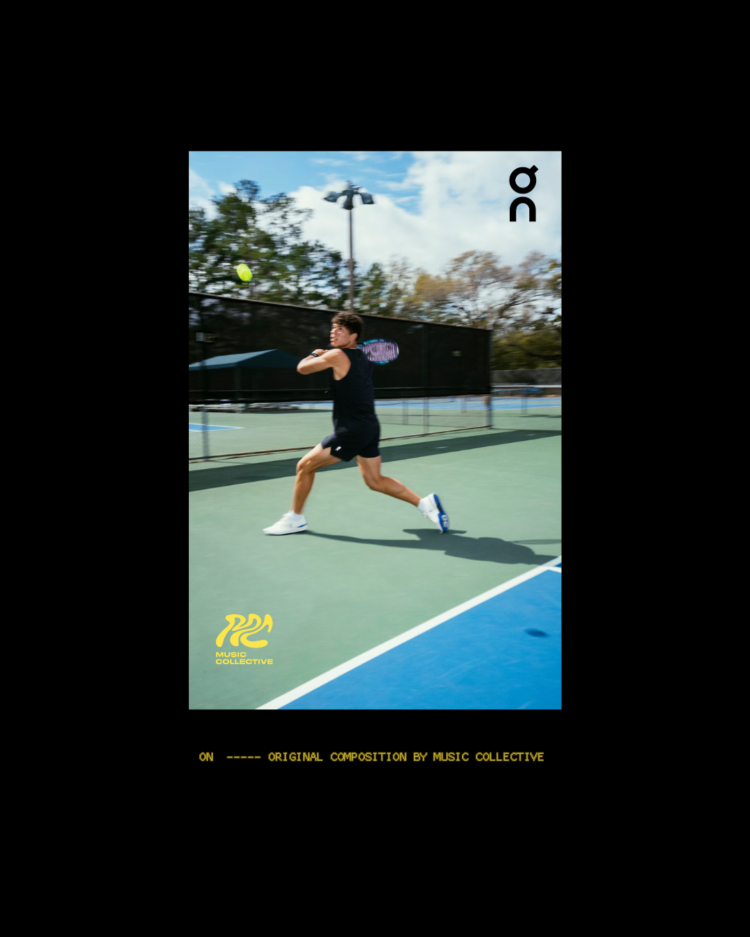 For ON's collaboration with Bel Shelton, we did. We built an original sonic soundscape from the ground up — layering the strike of the ball, the bounce, the movement through air, the silence between points. Because in tennis, silence isn't empty. It's where the tension lives, where the player breathes, where everything is decided.